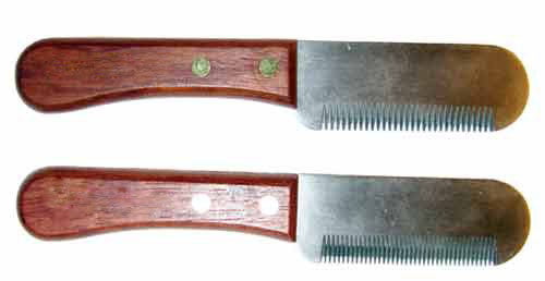 Il coltellino a denti piu’ stretti, più fine, è usato per determinate zone del corpo come la testa e sulle orecchie .Questo coltellino viene utilizzato anche per le rifiniture di tutti i Terrier a pelo ruvido.
